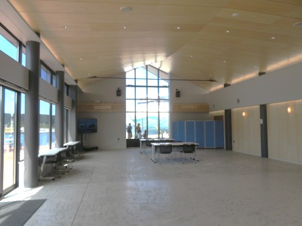 1階には待合所のほか24時間利用可能なトイレ、2階にはイベントで利用できる多目的ホールや、海に面したオープンテラスがあります。