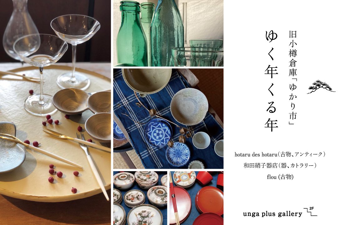 昨年に続き二回目の開催。 旧小樽倉庫2Fギャラリーにて、開催予定です。 出展者 ・hotaru des hotaru(古物、アンティーク) ・和田硝子器店(器、カトラリー) ・flou (古物)