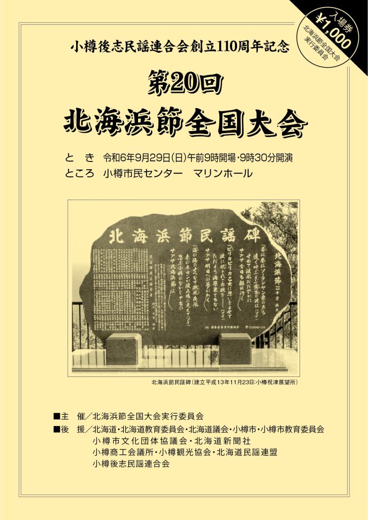 第20回となる本年は、大会運営補助機関の小樽後志民謡連合会が創立110周年を迎え、記念すべき節目の開催となります。