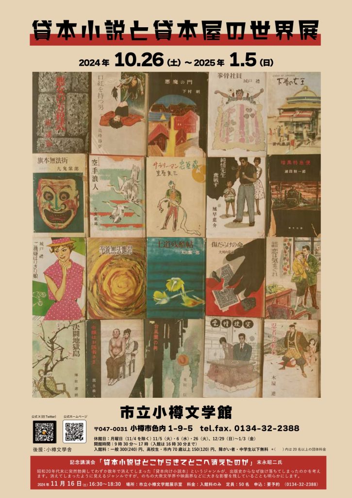 大衆小説研究家・末永昭二氏の監修のもと、貸本屋が果たした役割や忘れられたエンターテイメント「貸本小説」の魅力を再認識し、北海道・小樽の貸本屋の歴史・実態も追っていきます。