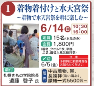 ・着物、タオル5枚、草履、足袋、着替入風呂敷を各自ご用意くださいますようお願い申し上げます。