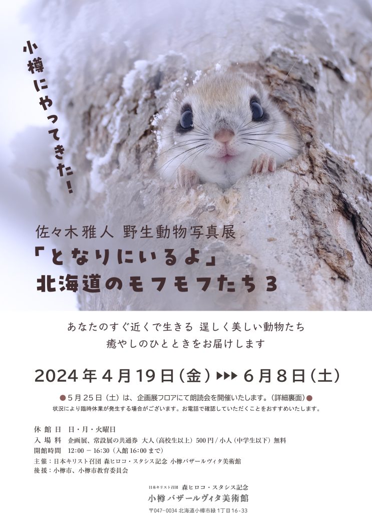 根室市生まれ、札幌在住の佐々木雅人(ささき・まさと)氏。 エゾモモンガを中心に、「すぐとなりにいるモフモフたちの可愛らしさ」、「日々を懸命に生きる姿の感動」をお伝えする写真展です。
