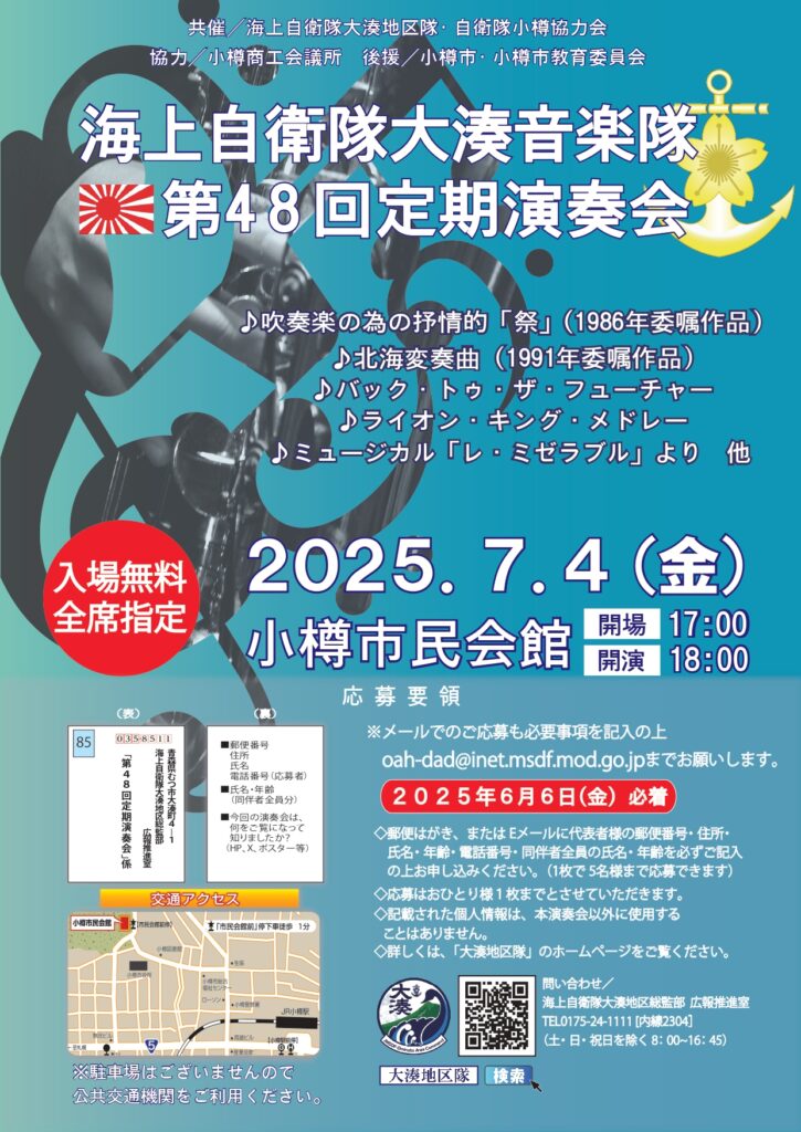 海上自衛隊大湊地区隊と自衛隊小樽協力会で標記演奏会を開催いたします。