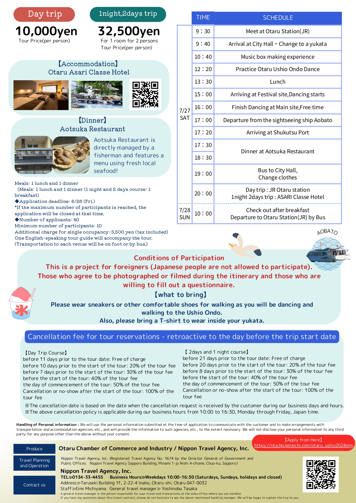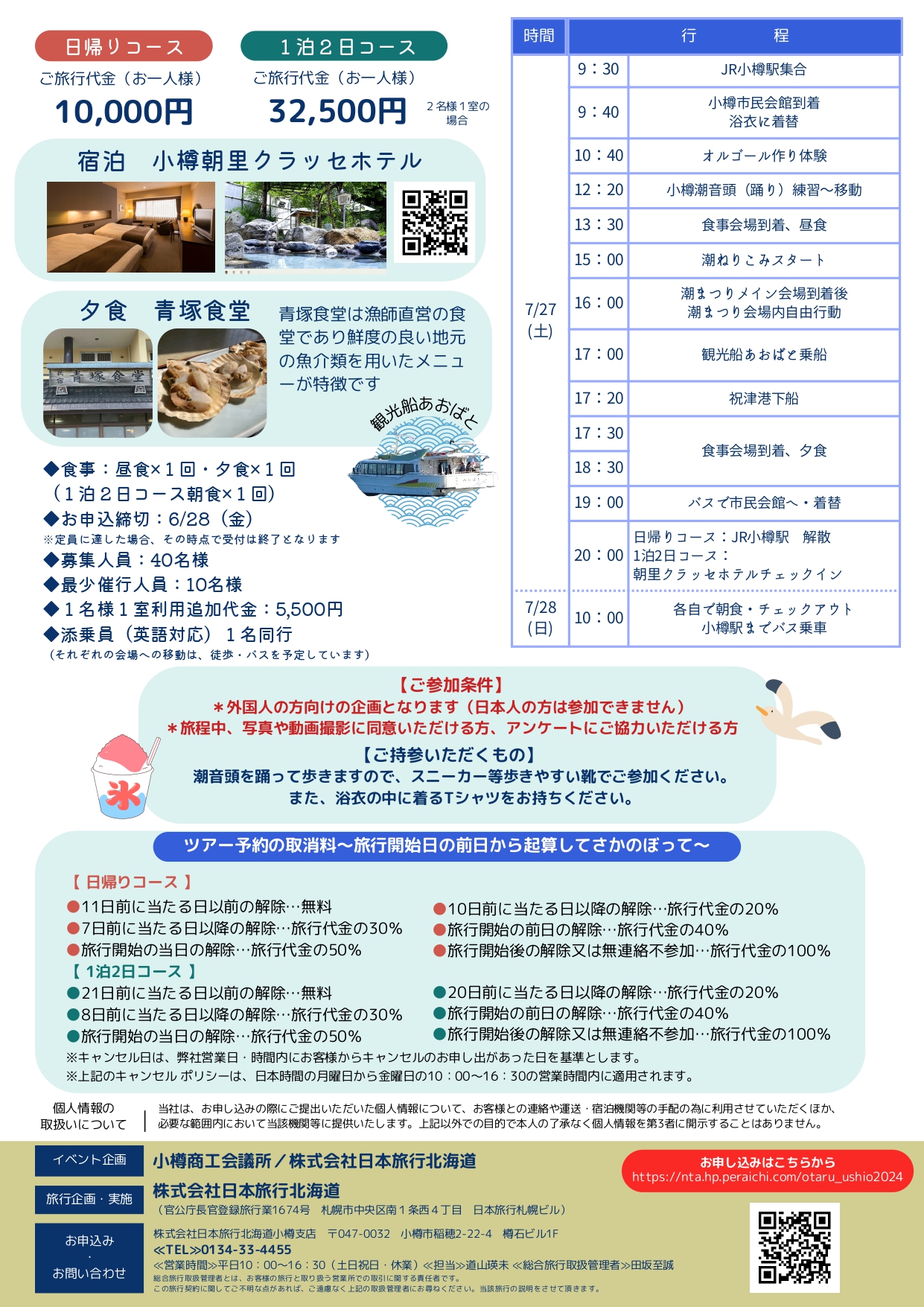 お申込み・お問い合わせ:株式会社日本旅行北海道小樽支店