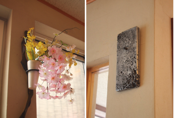店内を見渡すと、「おや?」があちこちにあります。鉄でできた花器が木に見えたり、時計にユーモアが詰まっていたり。扉の取っ手からほのかに光が差し込みます。これは野田さんや建築仲間の手づくりの一点物ばかりです。