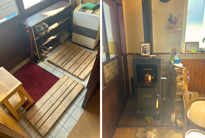 ドアを開けると、まず目に飛び込んでくるのは「靴をぬぐ玄関」。喫茶店で靴を脱ぐ? とちょっと戸惑いながらも足を踏み入れると、店内にはやさしい光が広がっていました。まるで、昔通っていた教室みたい。