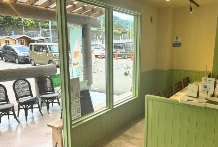 「ルミア」という名前は、最初カスミソウとカルミアの花言葉が好きで造語を考えたけど、結局カルミアからのみ取ったそうです。なんだか面白い佐藤さん。お店のロゴにはアイスと傘が描かれていて、自身が『超雨男』の佐藤さん、更には心に雨が降った時の助けになる、ここに来た人がホッとできるように…という願いがこめられています。しっかりイートインスペースもあります。