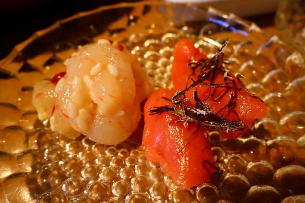 ボタンエビのぷりぷり感とねっとりとした食感、甘みが楽しめるボタンエビ塩辛を購入。家族で食べきれる80g入りがあるのもうれしい。