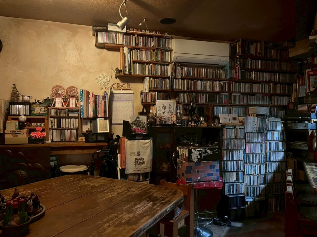 壁には一面覆いつくすほどの大量のCD。全て手塚さんが集めたものだそう。