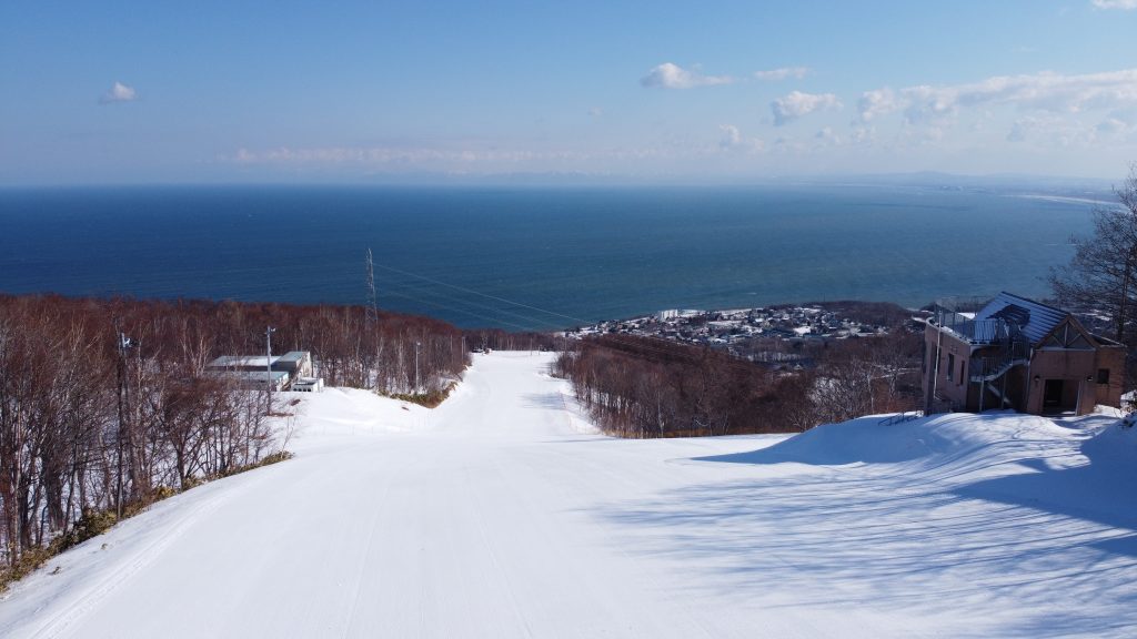 画像から一目瞭然ですが、どのスキー場も、海が見えるのが大きな特徴です。もっと具体的に言うと、「海に向かって滑り降りる」という感覚をお楽しみいただけるのが、小樽のスキー場の魅力であり、小樽っ子がついつい自慢したくなってしまう(実際、自慢している)ポイントです。