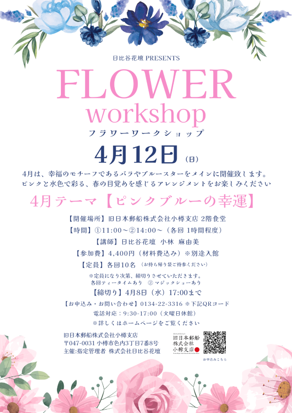 - 03月20日(金) 旧日本郵船(株)小樽支店 フラワーワークショップ開催