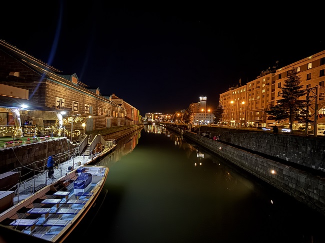 (↓5/26 20:10過ぎ…中央橋から見た夜の小樽運河。)[ヨ]