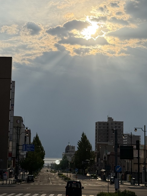 (↓6/7 5:30過ぎ…船見坂・小樽駅から見た朝日。)[ヨ]