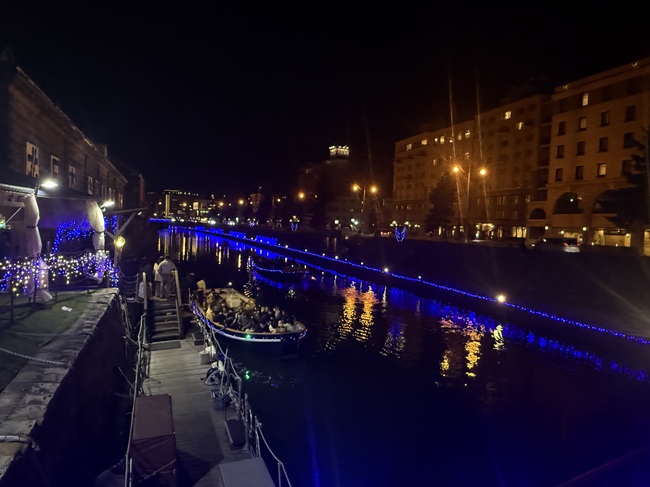 ◎小樽運河(浅草橋~中央橋)青の運河(2025.11.1~2026.1.31)…浅草橋街園(11/5)
