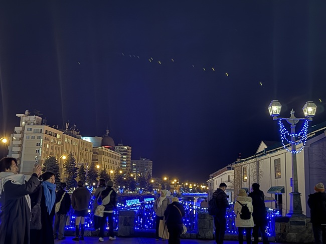 (↓12/6 18:05頃 …浅草橋街園の青の運河の前で皆さん記念写真を撮られていました。)[ヨ]