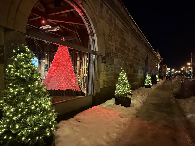 (↓12/20 20:10過ぎ…ルタオ運河プラザ店内にあるワイングラスタワーを外と中から見てみました。)[ヨ]