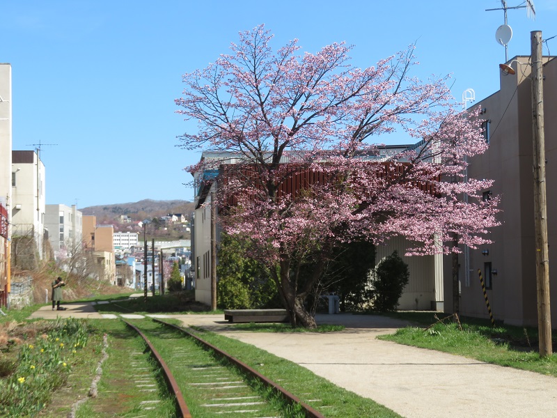 2025年4月28日(月)午前8時30分頃の旧手宮線の桜です。