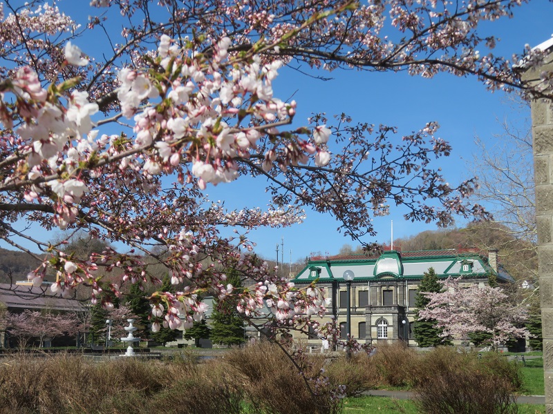「小樽運河を守る会」会長だった峯山冨美さんの桜はほぼ満開です。