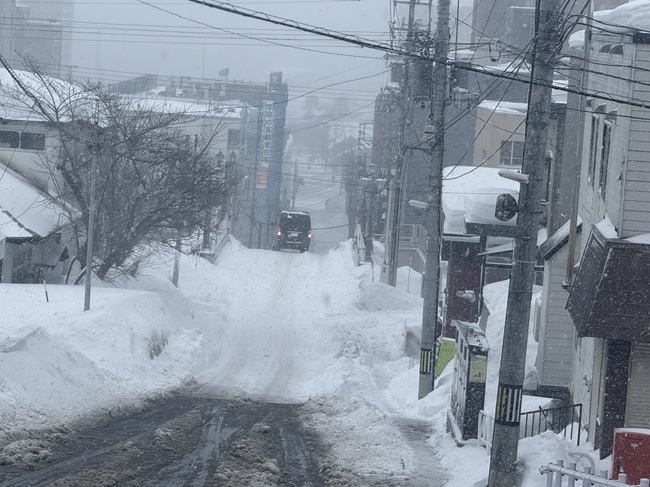 (↓2/19 8:30過ぎ…悪天候で船見坂もロードヒーティングが効かず、小樽駅もタクシー待ちの方も多く混雑していました。 )[ヨ]