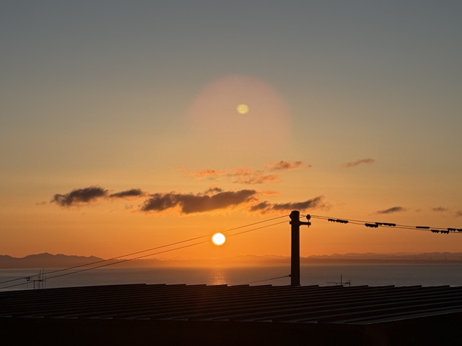 (↓4/25 4:45過ぎ…オレンジ色の朝日が輝いていました。)[ヨ]