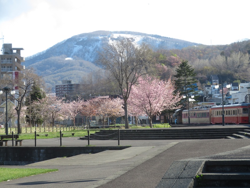 蒸気機関車アイアンホース号の線路沿いの桜も咲いていました。