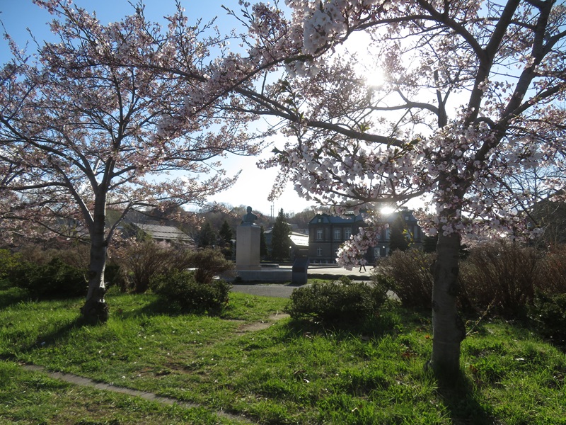 小樽運河沿いの桜と「小樽運河を守る会」会長だった峯山冨美さんの桜が