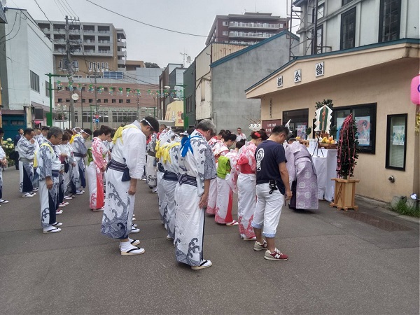 初日7月25日(金)の潮ふれこみは、例年通り梁川通りの都会館前からスタートし