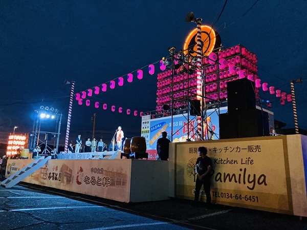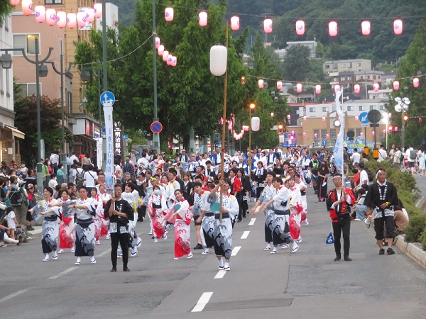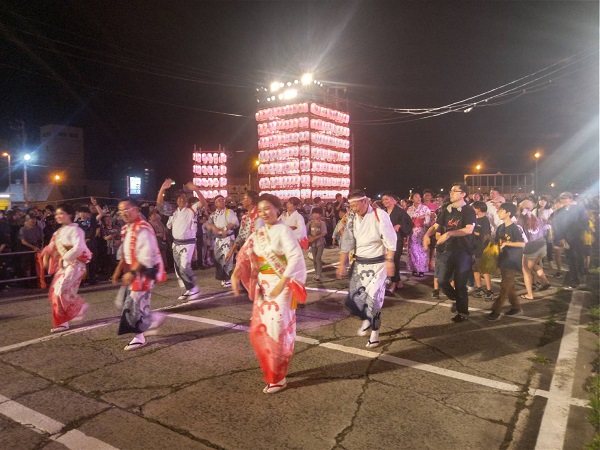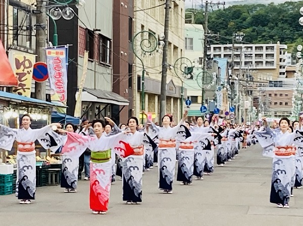 小樽港第3号ふ頭基部の中央ステージまで練り歩きます。