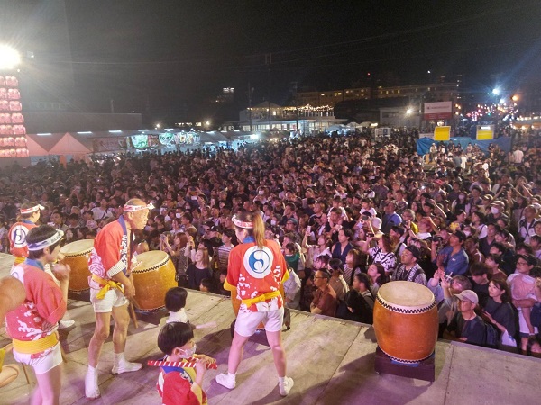 午後7時~8時 潮ふれこみ入場、開祭式(ステージ)