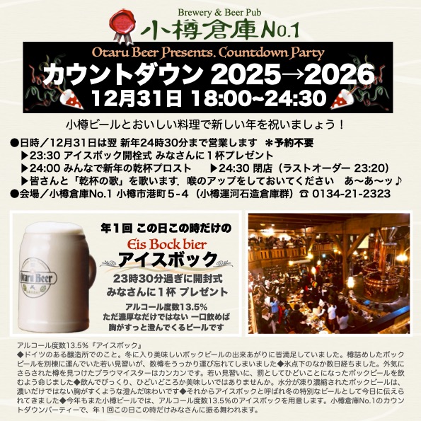 小樽ビールとおいしい料理で新しい年を祝いましょう!