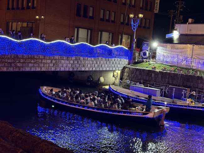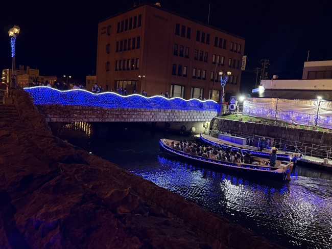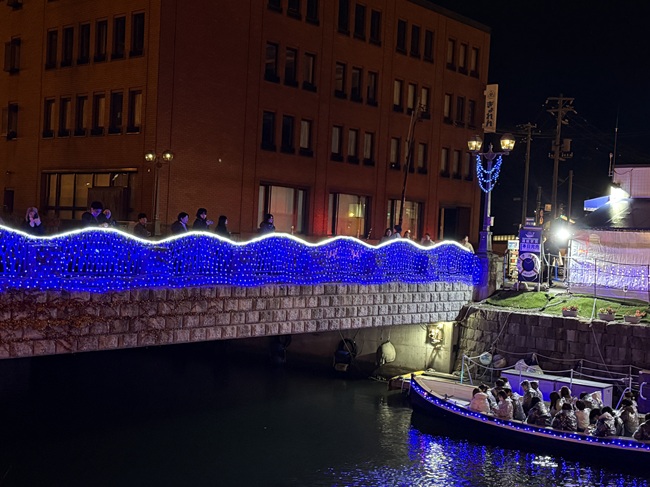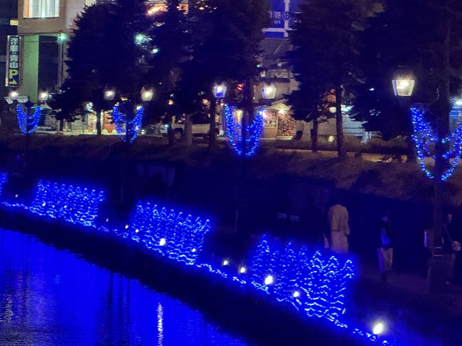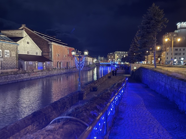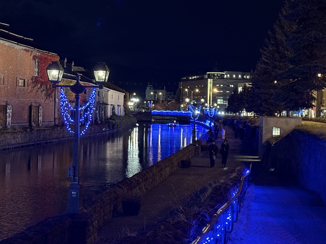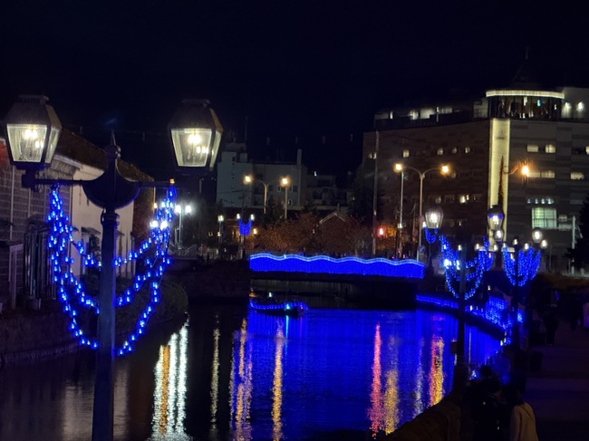 小樽運河は11月から1月の3か月間、青色の電飾が施されます。