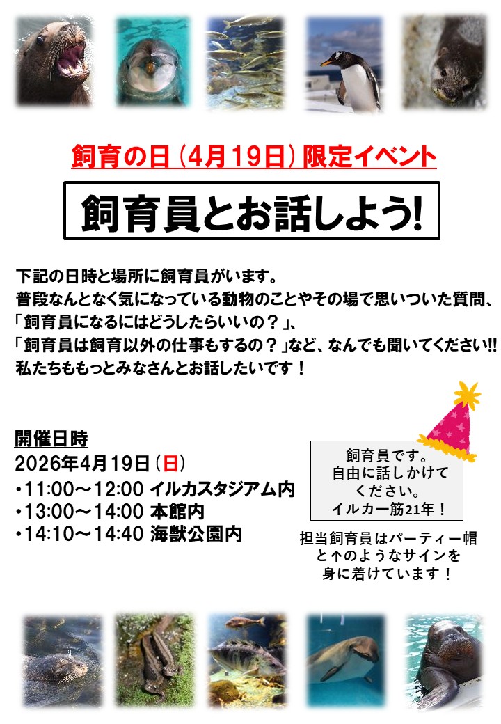 おたる水族館では2026年4月19日(日)「飼育の日」に合わせて