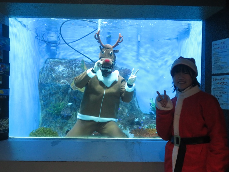 例年サンタが水槽に潜りますが、