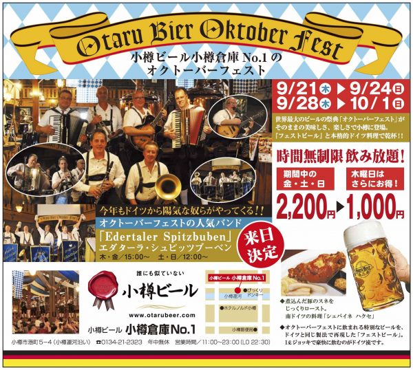 今回、小樽ビール№1のオクトーバーフェスト開催期間は