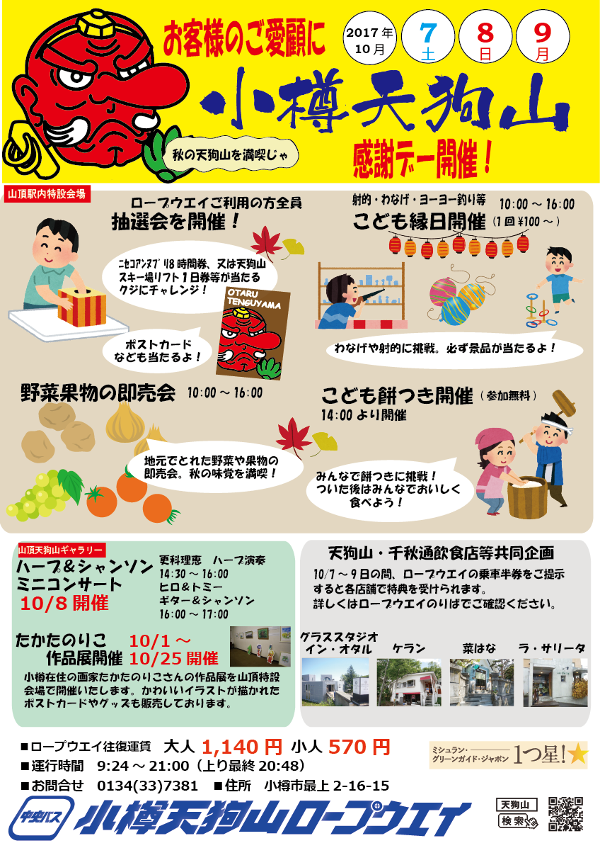 ぜひ、三連休を天狗山で楽しみませんか⁈
