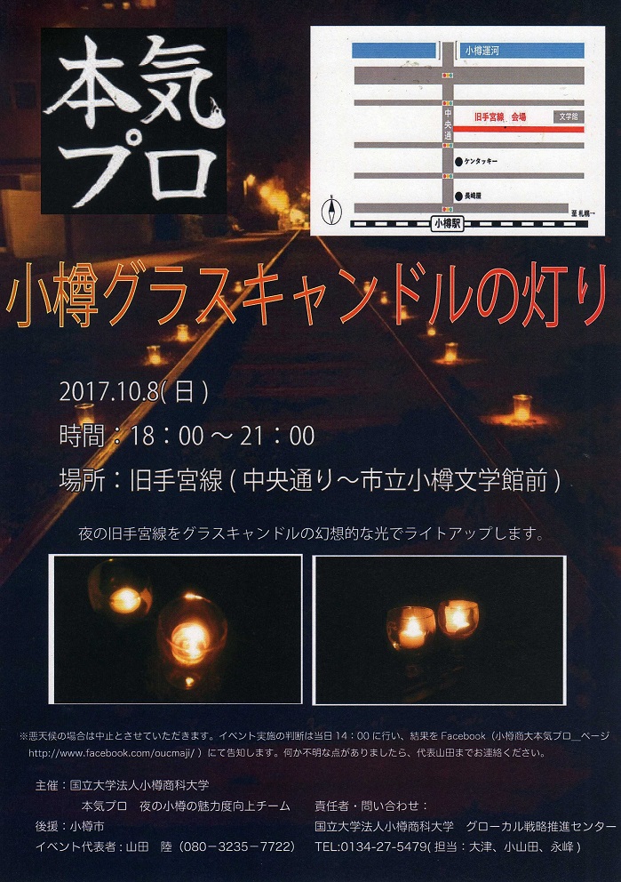 夜の旧手宮線をグラスキャンドルの幻想的な光でライトアップされます。