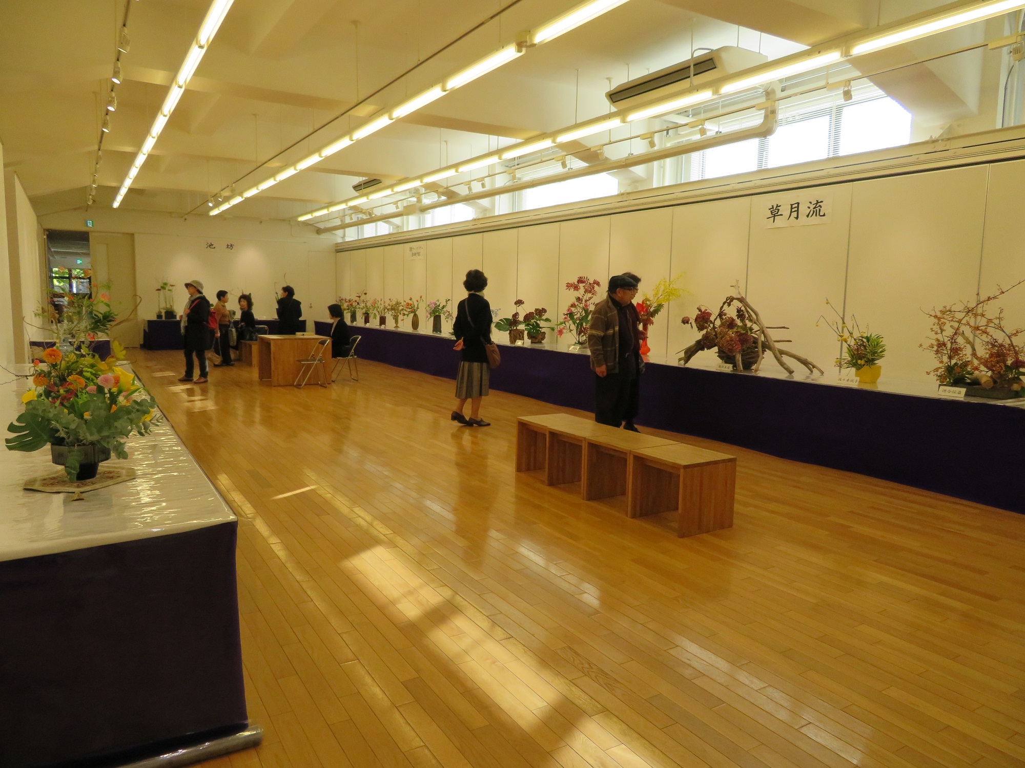 出展は、小原流、池坊、草月流、深雪アートフラワーです。