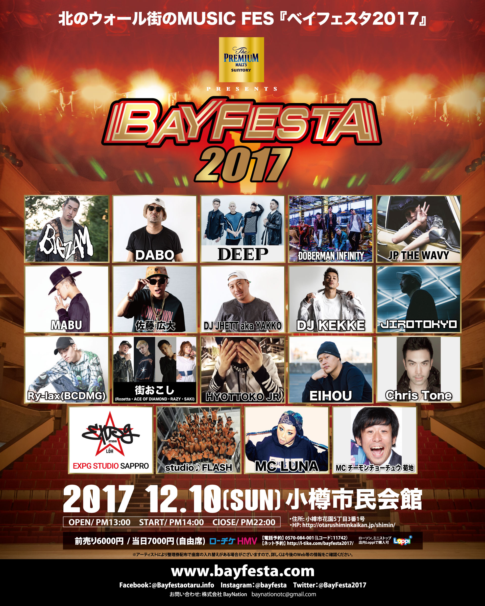 「BAYFESTA 2017」は 小樽出身のヒップホップアーティスト BIGZAM(ビグザム)さんが プロデュースする音楽イベントです。 2014年に小樽から始まったBAYFESTA OTARU、 北海道を代表する音楽フ […]