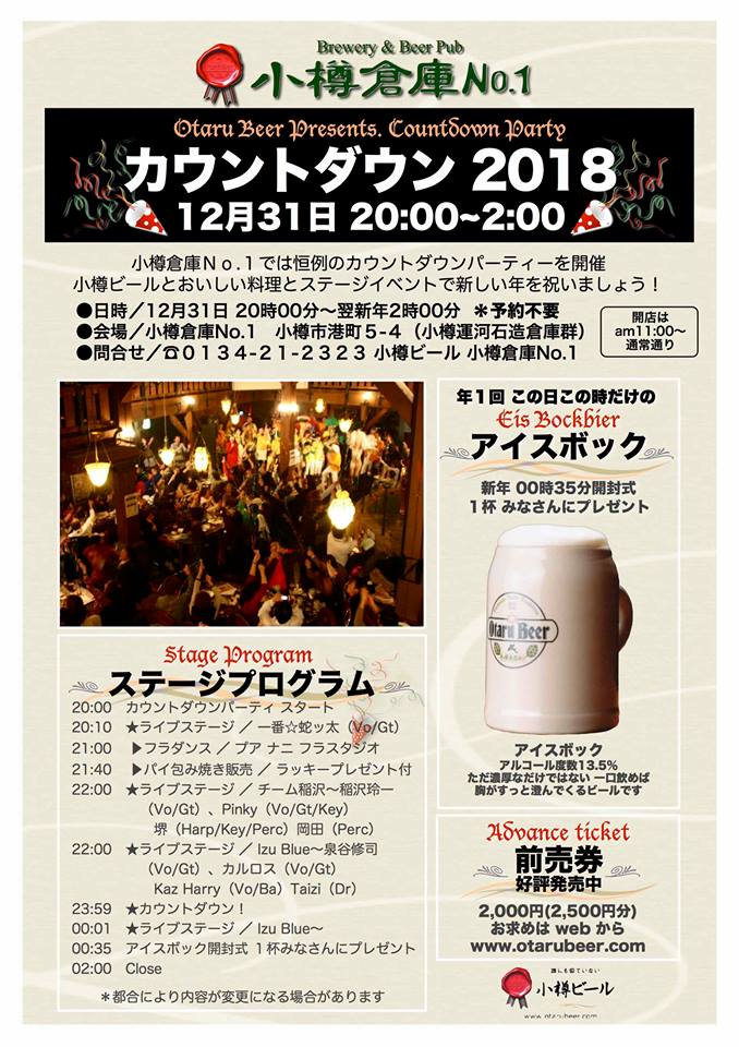 小樽倉庫No.1では、恒例の『カウントダウンパーティー2018』を開催します。 小樽ビールと美味しい料理とステージイベントで新しい年を祝います。 アイスボックは1年1回、カウントダウンパーティーで皆さんに1杯振舞われます […]