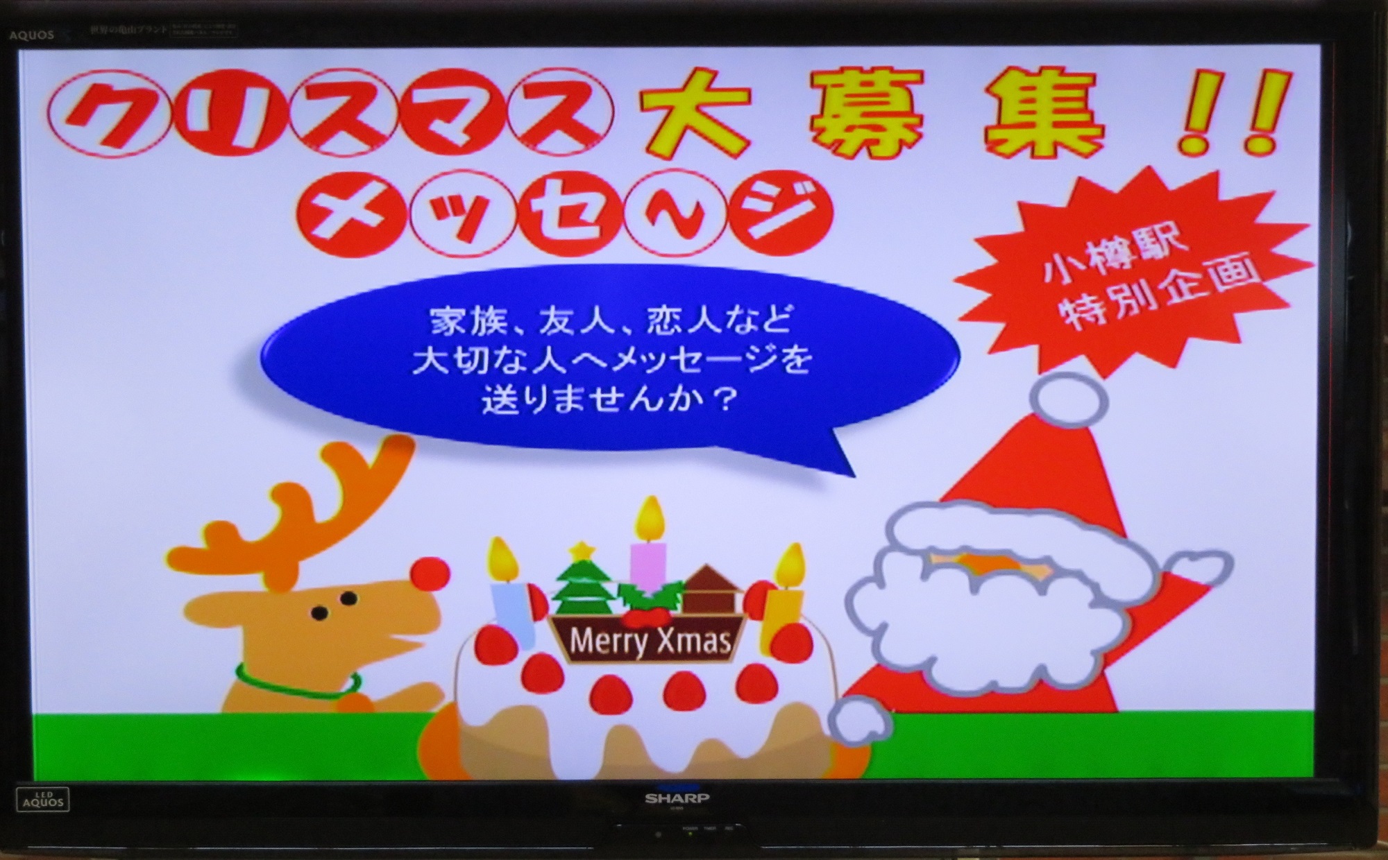 JR小樽駅では『2017年クリスマス特別企画』として 12月24日(日)・25日(月)の2日間 小樽駅改札中央の大型ディスプレイに クリスマスメッセージ が放映されます。 今年の応募は60通でした。 皆 […]