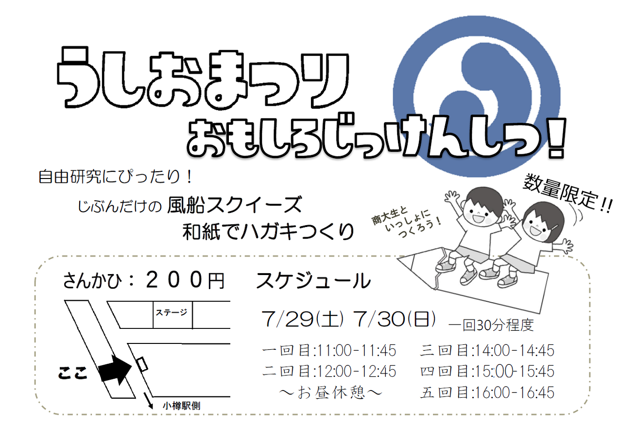 うしおまつり おもしろじっけんしつ! 自由研究にぴったり! オリジナルの風船スクイーズ・和紙でハガキつくりませんか!! 商大生といっしょにつくろう!! 数量限定!! 参加費 200円 スケジュ […]