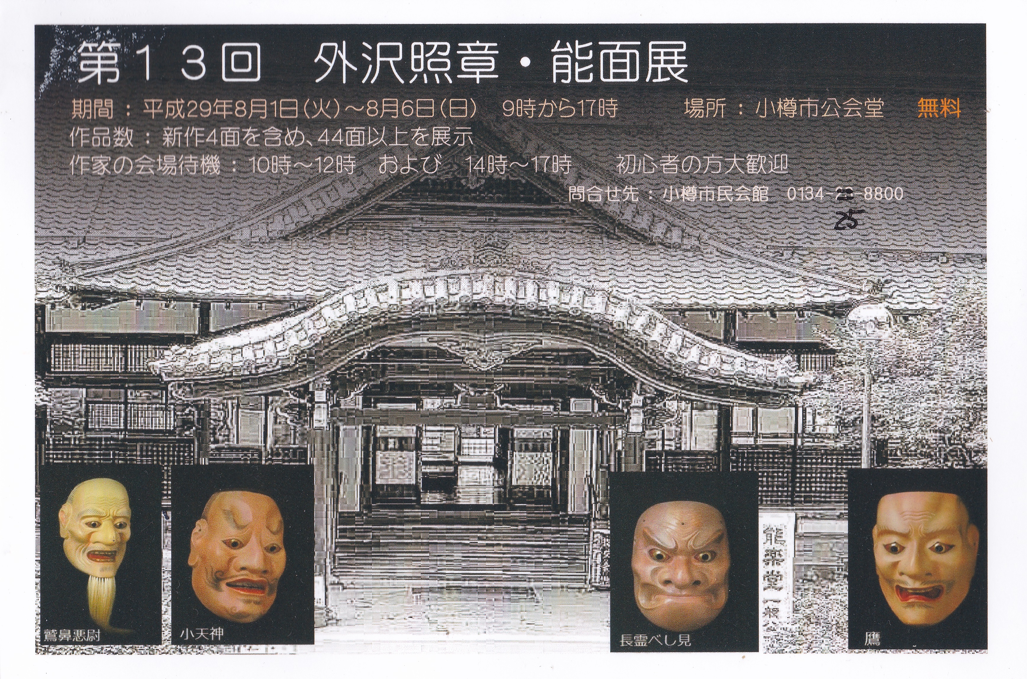 8月2日(水)「第13回 外沢照章 能面展」に行ってきました。 ・ 会場は小樽市公会堂地下展示場 ・ 外沢照章さんが小樽で開催している『能面展』も、 今年で13回目となります。 今回は最新作4面を含めた44面が 能舞台を […]