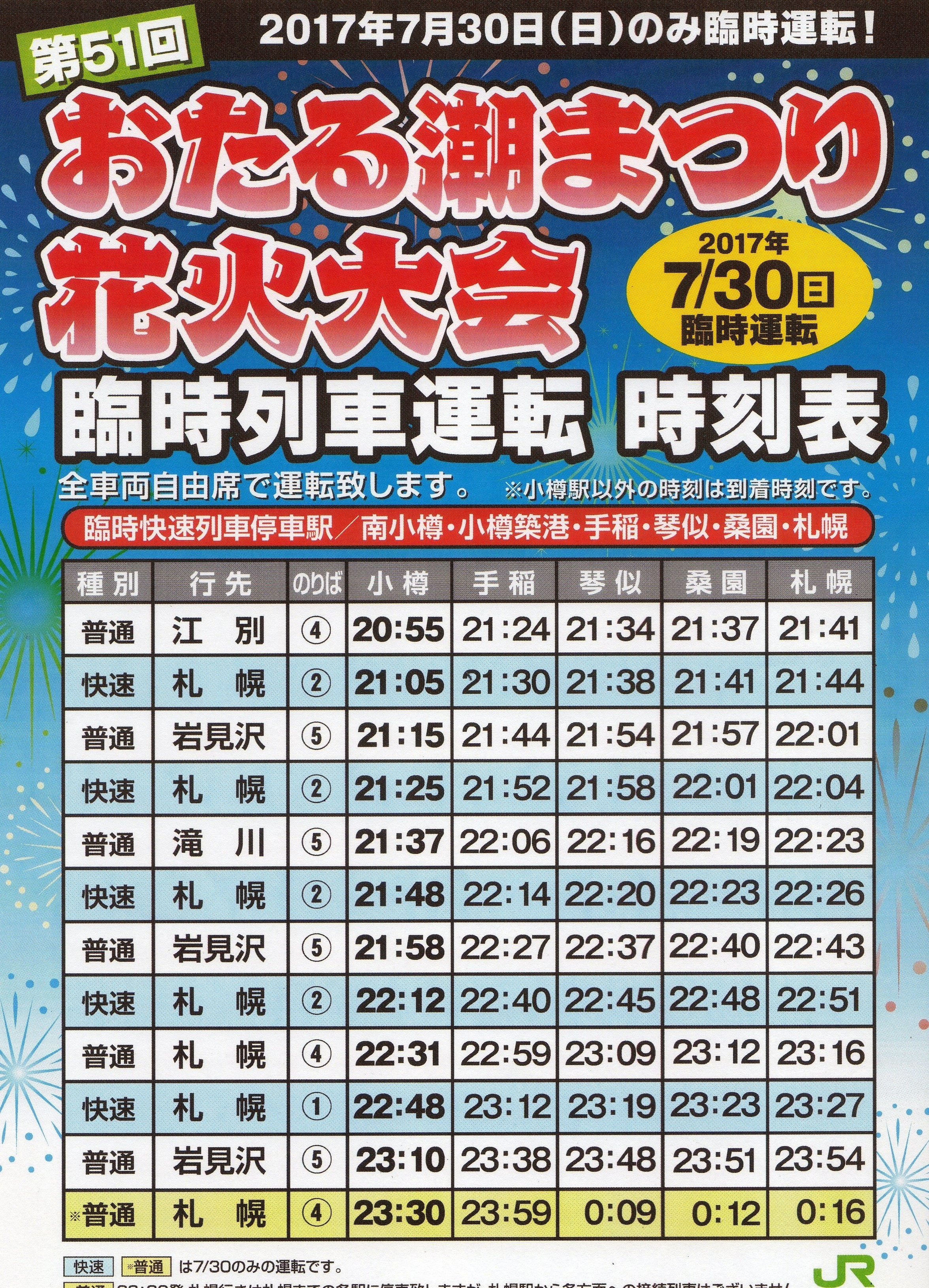 小樽市内の花火大会 小樽市内で潮まつりを始めに花火大会が あります 夏の夜空の美しい花火を見に行かれませんか ◎ 【小樽潮まつり花火大会】 開催日:7月28日(金)、30日(日) 荒天時の対応:28日が荒 […]