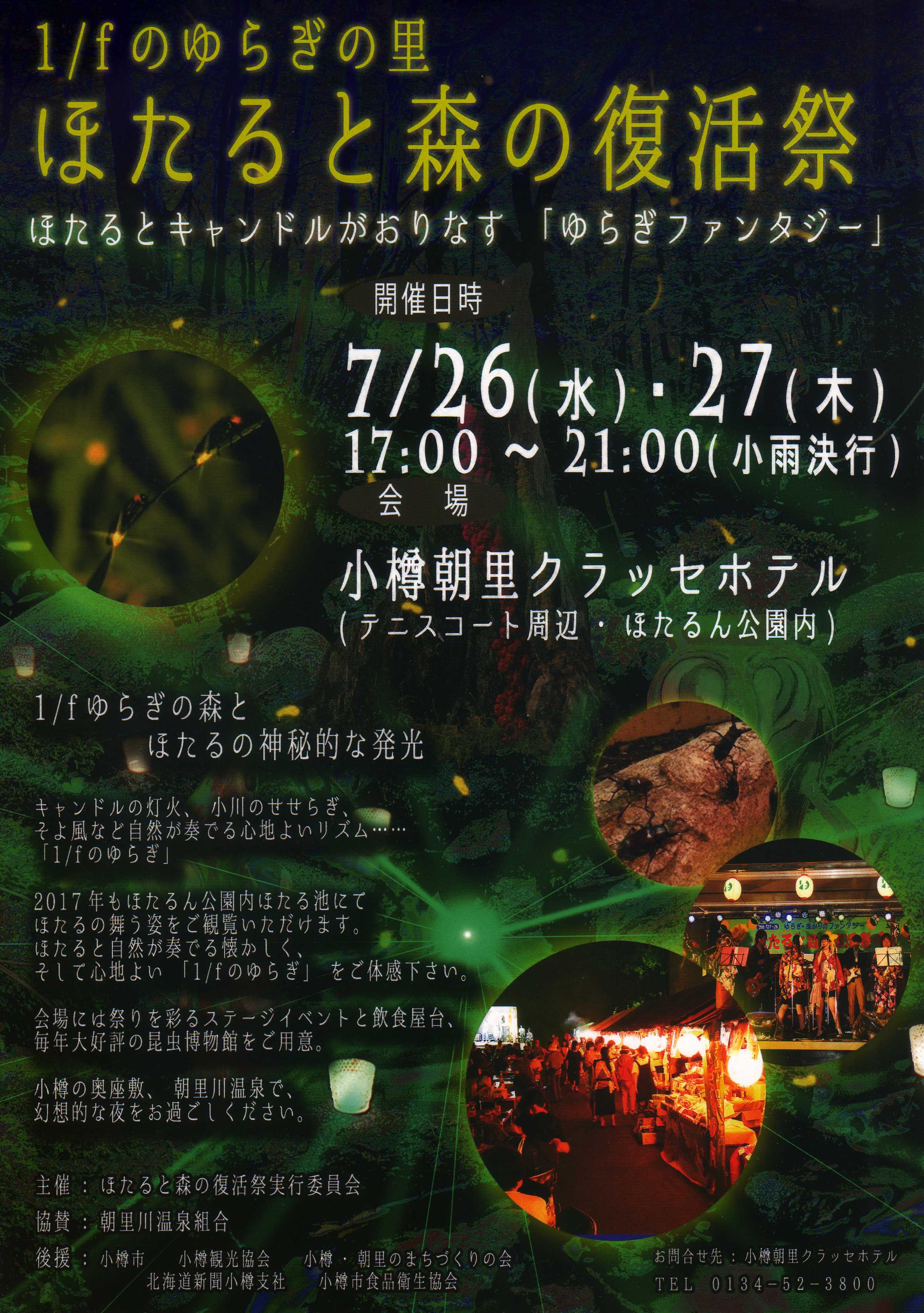 1/fのゆらぎの里…ほたると森の復活祭 7月26日(水)・27日(木) 17:00~21:00 小雨決行 小樽朝里クラツセホテル(テニスコート周辺・ほたるん公園内) ほたるとキャンドルがおりなす『ゆらぎファン […]