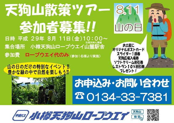 2017 年 8 月 イベント・おすすめ情報(1日~31日) 1(火) 「運河プラザ」・「物販コーナー」営業時間延長(7/1~8/31 9:00~20:00)[運河プラザ] 「天狗山ロープ […]
