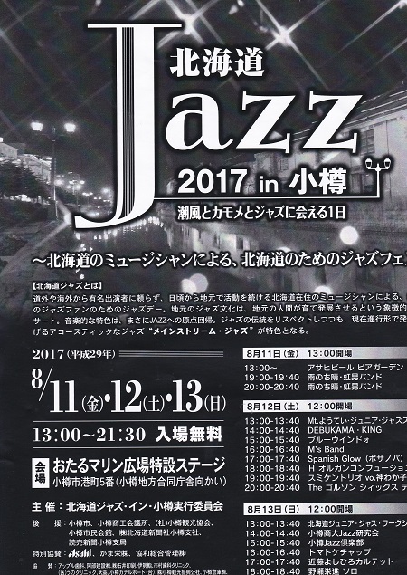 北海道JAZZ 2017 in 小樽 8月11日(金)~13日(日) 13:00~21:30 おたるマリン広場特設ステージ 入場無料 小樽市港町5番(小樽地方合同庁舎向かい) 潮風とカモメとジャズに会える […]
