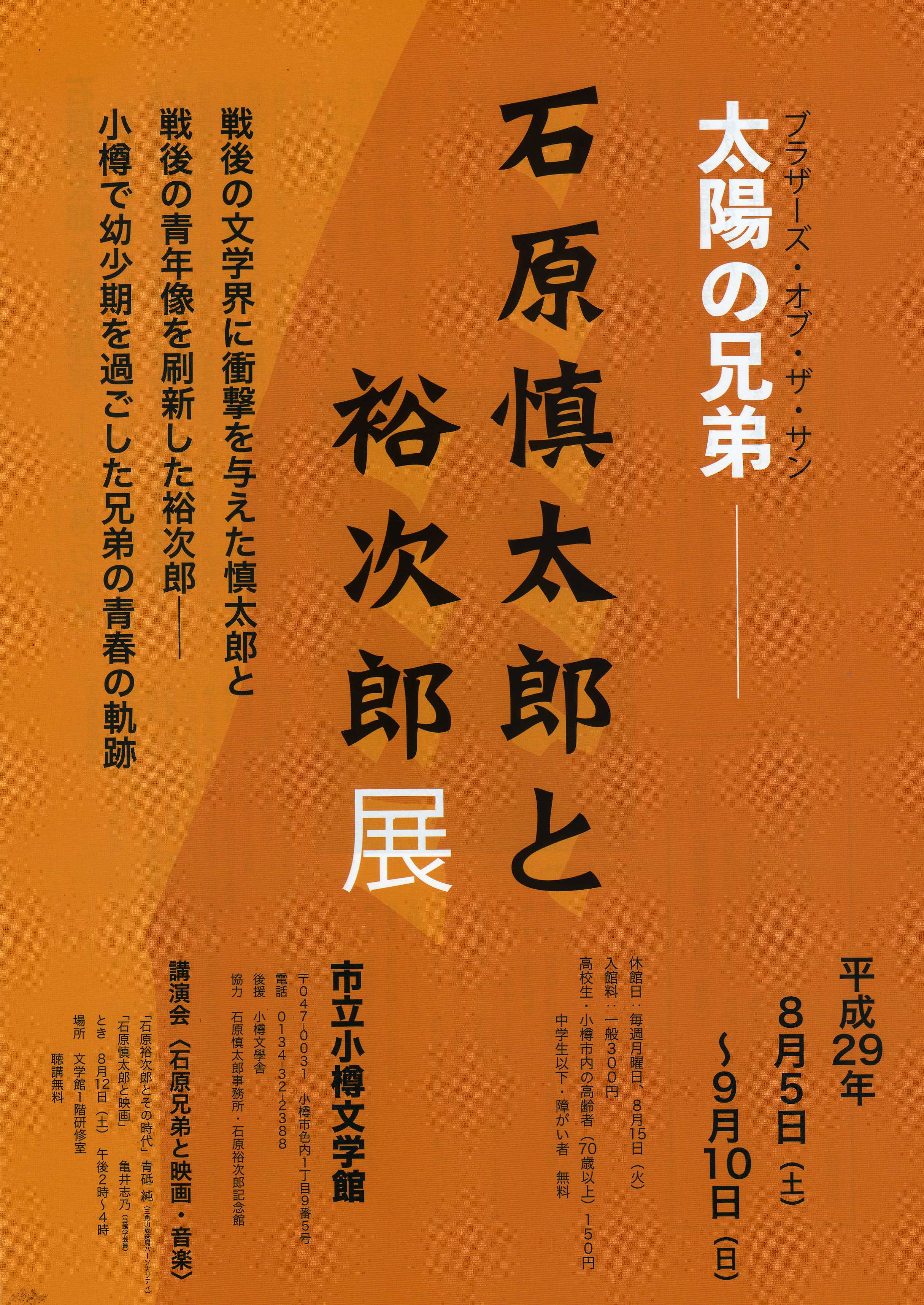市立小樽文学館で、石原慎太郎と裕次郎展を行ってます。 戦後の文学界に衝撃を与えた慎太郎と、 戦後の青年像を刷新した裕次郎、 小樽で幼少期を過ごした兄弟の軌跡 市立小樽文学館で、石原慎太郎と裕次郎展を行ってます。 戦後の文 […]
