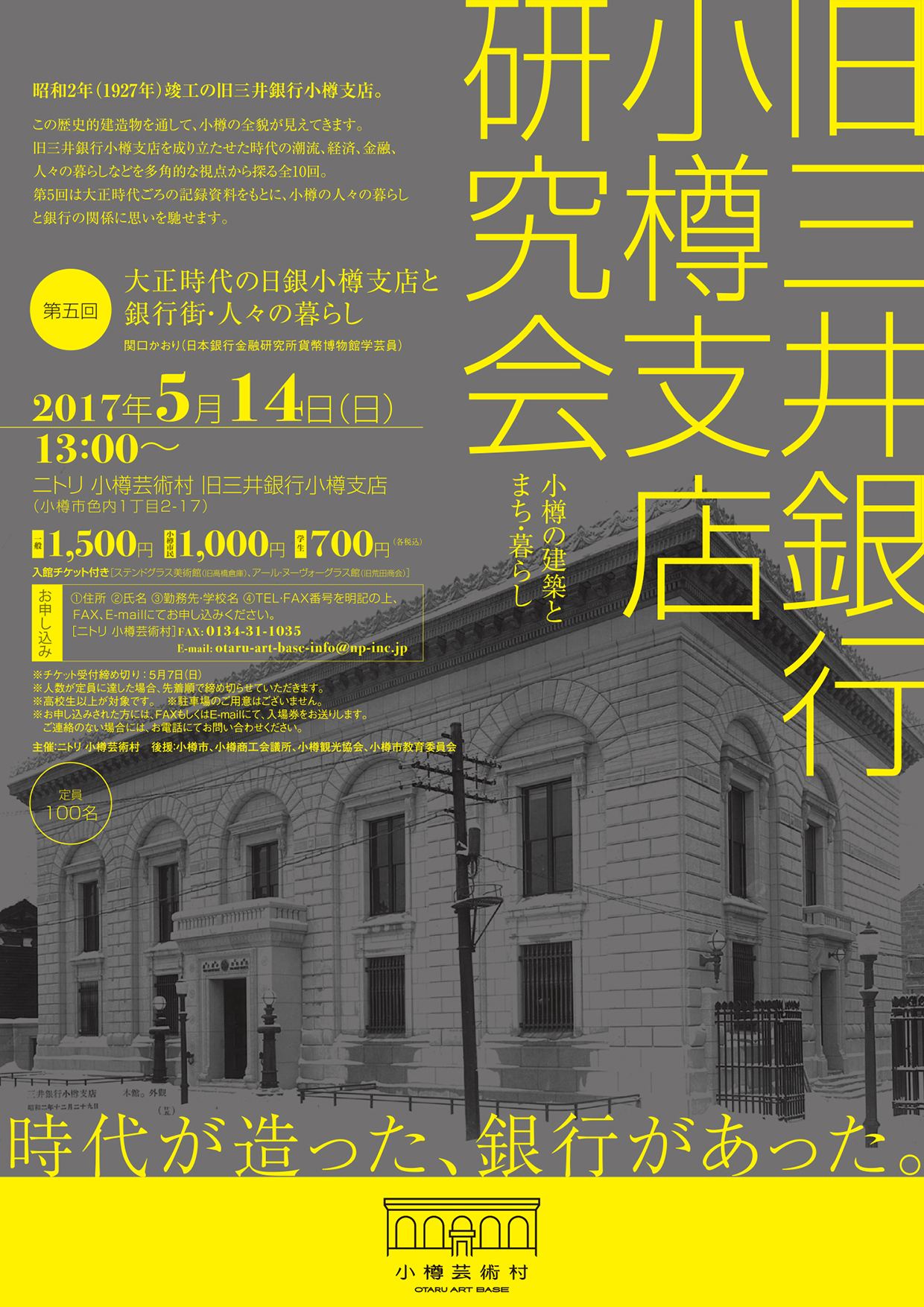 第5回 旧三井銀行小樽支店研究会 「大正時代の日銀小樽支店と銀行街・人々の暮らし」 5月14日(日)に行われ、第5回目となり、たくさんの人が来ていました。 講師は、日本銀行金融研究所貨幣博物館学芸員 関口かおり氏、 金融 […]