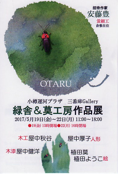 小樽運河プラザ三番庫ギャラリーにて 「緑舎&莫工房 作品展」が開催されます。 ・・ ●●● 緑舎&莫工房 作品展 ●●● ・●とき:2017年5月19日(金)~5月22日(月) 11:00~18:00 ////・・・※5 […]