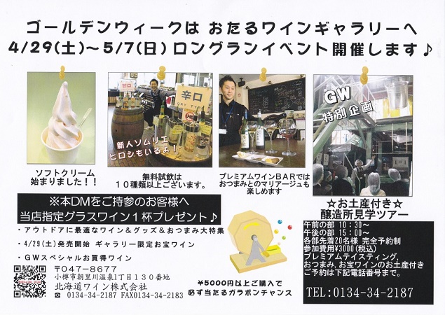 今年もあと10日ほどで、ゴールデンウィークに入ります。 「小樽ワインギャラリー」では、ゴールデンウィークに向け ロングランイベントが開催されます。 4 / 29 (土) ~ 5 / 7 (日) 9 : 00 〜 17 […]